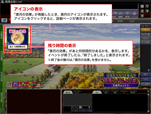 - 「満月の効果」終了後にログアウトすると、「満月の効果」のアイコンは消えます。