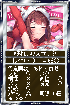 特殊能力 ・20日間プレゼントを持ってきてくれます。 ・限界突破確率と限界上昇値がアップ |