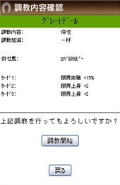 - 1. 調教内容の確認画面とともに「調教開始」ボタンが表示されますので、よろしければ「調教開始」ボタンを押してください。