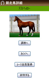 - 1. 競走馬詳細が表示されるので「レース出走登録」ボタンを押します。